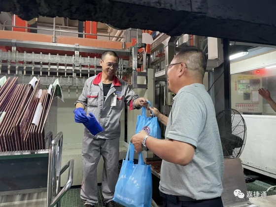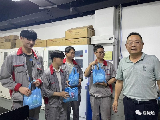 炎炎夏日,酷暑难耐,为切实做好夏季的防暑降温工作,公司领导心系一线员工的身体健康。7月15日下午,嘉定工业区总工会为公司员工送来了防暑降温物品,董事长严学锋亲自为一线员工发放,同时送来了公司领导的亲切关怀,送来了夏日里的一抹清凉,解暑鼓干劲。
